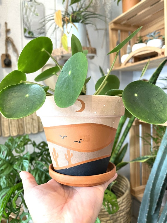 Paint Plant Kit Desert Moon Design Indoor Plant Pot Painting Kit With Stencil Paint Your Own Pot Kit Plant Lover Gift Etsy